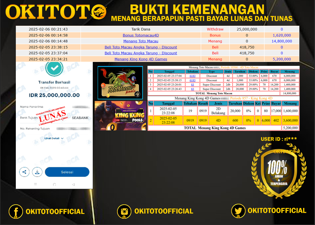 Berikut adalah bukti bahwa OKITOTO mempunyai integeritas yang tinggi dan dapat dipercaya semua orang, bukti jackpot berikut juga merupakan pembuktian yang kuat dan dapat dipertanggung jawabkan oleh pihak OKITOTO. Selamat kepada member kami dengan user id ri*** telah memenangkan jackpot di situs okitoto.